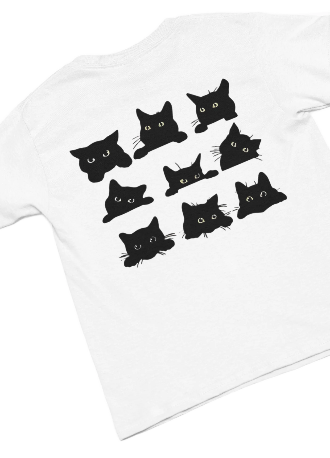 white t-shirt with black cat fun design